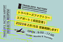 2020年4月より休業を続けていた、トラベラーズファクトリーエアポート(成田空港)が、2023年2月15日(水)に営業再開します!・・・>>>