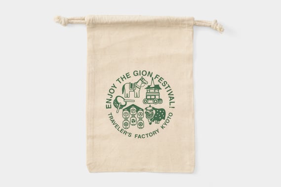 祇園祭オリジナルデザインのコットンバッグを発売します。トラベラーズノートが入る巾着タイプのバッグです。トラベラーズノートと一緒に祇園祭を楽しんでください。
