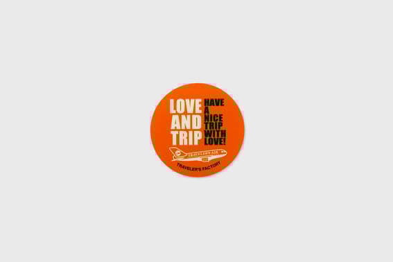 裏面にトラベラーズノートのゴムが通せるチャームタイプの「LOVE AND TRIP」カンバッジです。「LOVE AND TRIP」なトラベラーズノートにカスタマイズしてプレゼントすれば、さらに想いは伝わるはずです。