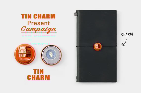 期間中にトラベラーズノート レギュラーサイズまたはパスポートサイズ本体を含む6000円(税込)以上の商品をお買い上げの方に、「LOVE AND TRIP」のカンバッジチャームをプレゼントします。大切な方への特別なバレンタイン&ホワイトデーギフトにぜひ。