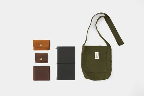 トラベラーズノートのレギュラーサイズに加え、お財布やスマートフォン、文庫本などが入るサイズです。