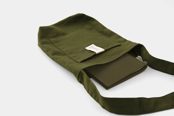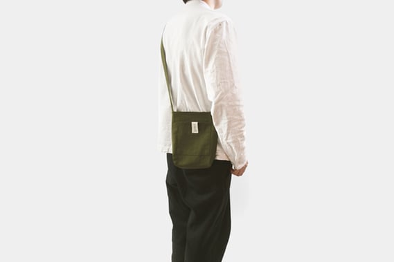 トラベラーズファクトリーオリジナルのサコッシュは、ナチュラルな風合いのコットンを使用してタイのチェンマイで作っています。リバーシブルなので、外に出ているポケットを内ポケットにして使用することもできます。トラベラーズノートのレギュラーサイズがちょうどよく収まるのに加えて、お財布やスマートフォンなどが入るポケットが付いています。自転車乗りにはもちろん、旅先での街歩きにも便利にお使いいただけます。また、オリーブの他にも、ナチュラル、紺、茶が発売中です。