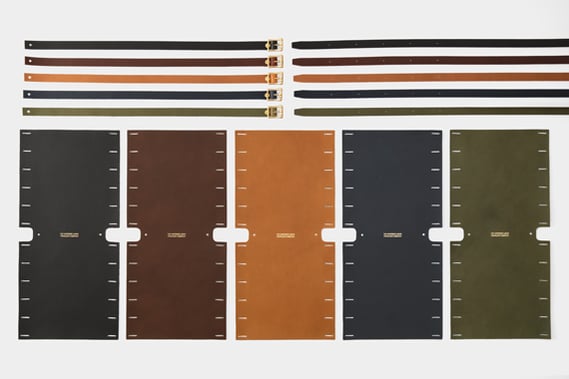 レザーの色は、トラベラーズノートとあわせて、黒・茶・キャメル・ブルー・オリーブの5色をご用意していただきました。本体とストラップ2パーツをお好みの色で組み合わせ、その場でお渡しします。