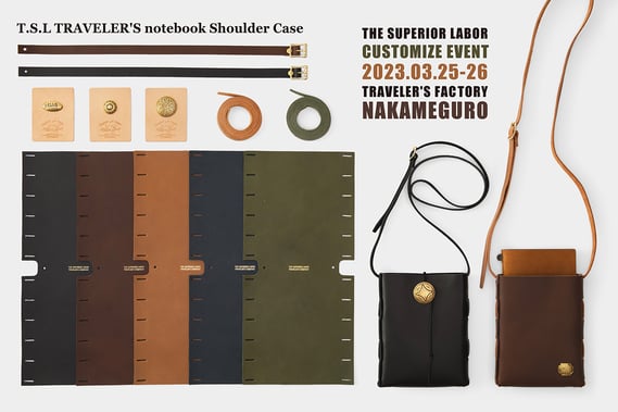 THE SUPERIOR LABORのフラッグシップショップ、T.S.L Kurashiki の1周年を記念して、3月25日(土)~26日(日)にトラベラーズファクトリー中目黒で、トラベラーズノート ショルダーケースのカスタマイズイベントを開催します!