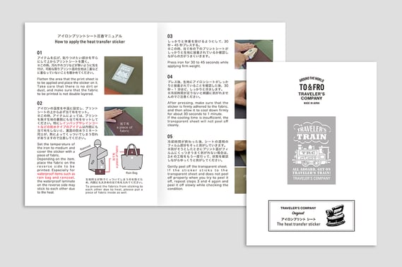 アイロンプリントシートは、トラベラーズホテル、エアライン、トレイン、レコードのロゴがデザインされています。ショルダーバッグやオーガナイザーなどの生地にアイロンを使って転写し、オリジナルバーションにカスタマイズできるシートです。写真はショルダーバッグやオーガナイザーに使用している生地、Humming Birdに転写しています。こちらは、「TO&FRO」とトラベラーズカンパニーとのコラボレーションアイテムをご購入の方にプレゼントします(なくなり次第終了となります)