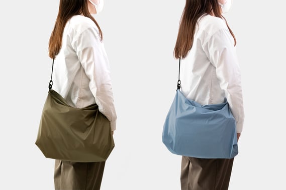 ショルダーバッグは、繊維メーカーならではの驚くほど薄くて軽い高機能生地、Humming Birdをベースにしたオリジナルカラーの生地を使用し、簡単に長さ調整ができるショルダーベルトが付いています。街歩きにはもちろん、自転車のお供や旅のサブバッグにもおすすめです。