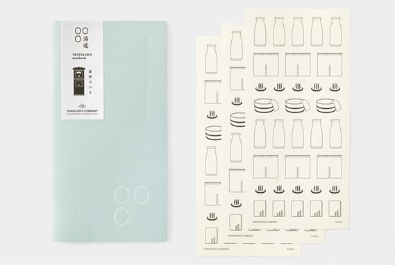 湯に浸かった記録を日記のように記すノートです。付属のアイコンシールは、下駄箱の鍵に満足度を書き込んだり、牛乳瓶に風呂上りに飲んだものを記したりして自由にお使いください。中紙はMD用紙を使用しています。