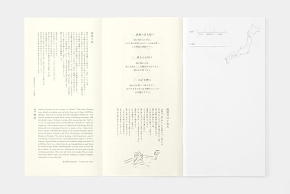 扉ページには、真珠庵 第27世住職 山田和尚様による「湯道温心」の文字と共に、家元の小山薫堂氏による湯道についての言葉が綴られています。