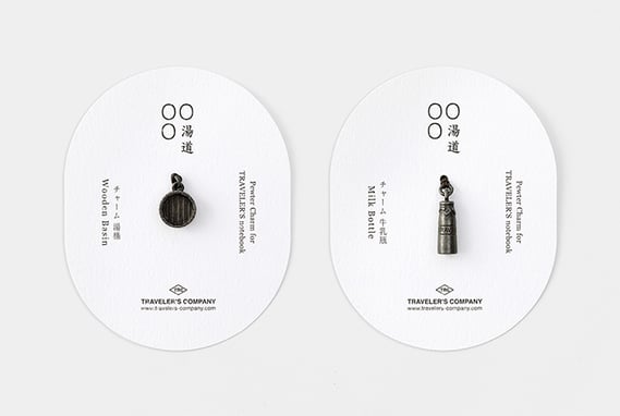 お風呂の必需品である桶と風呂上りの楽しみの牛乳瓶をかたどったチャームです。トラベラーズノートの留め具と同じ素材で作りました。トラベラーズノートのゴムに付けたり、アクセサリーやキーホルダーとして使うのもおすすめです。
