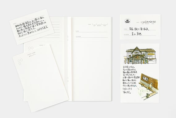 中紙をミシン目に沿ってカットし、切手を貼って定型のはがきとして送ることができます。湯を浸かり、浮かんだ思いをはがきに綴って送ってみてはいかがでしょうか。
