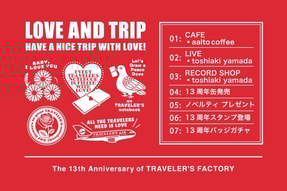 13周年のテーマはLOVE AND TRIPです。皆様からの愛に支えられて13年も続けられることができた感謝の気持ちを込めて、今年もさまざまな企画をご用意しました。
