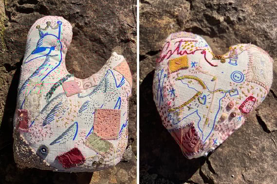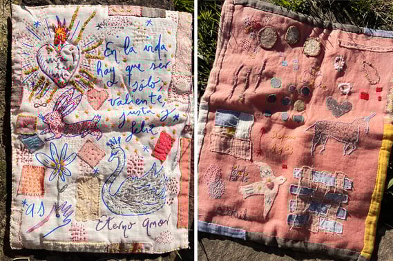 刺繍やパッチワークなどでアイトールさんの世界が表現されたテキスタイル作品も展示します。