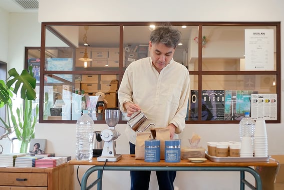 アアルトコーヒーの庄野さんが目の前でコーヒーを淹れてくれます。ぜひこの機会に淹れ方やコーヒーのことなど気軽に相談してみてください。