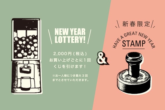 新春福引に参加いただいたすべての方に、限定トラベラーズノートが当たるWチャンスにご応募できるNEW YEAR LOTTERY TICKETをプレゼントします。こちらのチケットからアクセスできるオンラインフォームからご応募いただいた方より、抽選で新春限定トラベラーズノートが当たります。