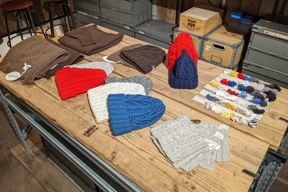 ※在店日には、使う方の頭のサイズにあわせ、お好みの糸・色・カタチで自分だけのニット帽をオーダーできます。
