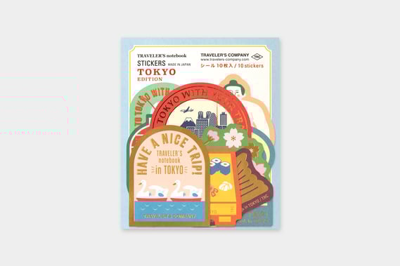 江戸の町人文化から誕生したといわれる招き猫に、江戸時代から続く大相撲の力士、江戸前寿司に東京ラーメン、クリームソーダなど、東京にまつわるデザインのステッカーを10枚セット。トラベラーズノートはもちろん、東京を旅するための道具のカスタマイズに!