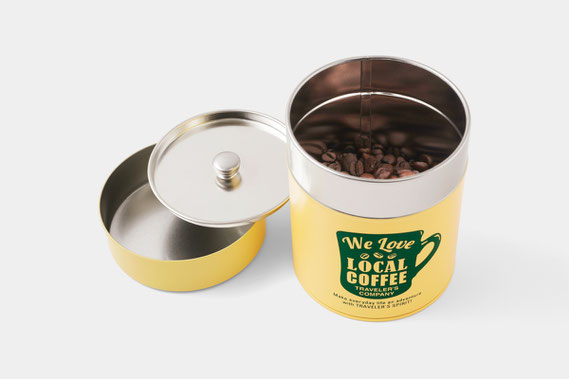 こちらのコーヒー缶も以前の周年缶と同じ東京下町の工場で、職人さんが手作りに近い製法で作っています。14周年のテーマは、THE TRAVELER'S SPIRIT。いくつかあるそのメッセージの中から、「We Love Local Coffee」をピックアップしてデザインしました。
