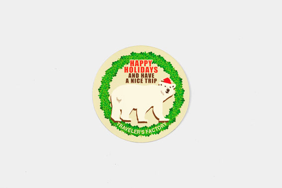 トラベラーズファクトリーでは11月12日より、クリスマスギフトにもおすすめのシロクマのレザータグやブラスバッジ&チャームを販売。さらにトラベラーズファクトリーオリジナルのクリスマスギフトステッカーを使ったラッピングサービスを行っています。