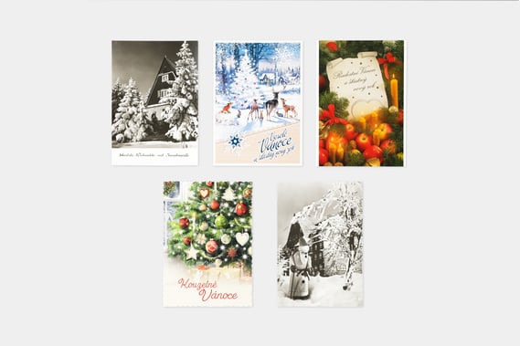 主に東欧でチャルカが探してきたヴィンテージのクリスマスカードと封筒のセット。中にメッセージを書くことができます。