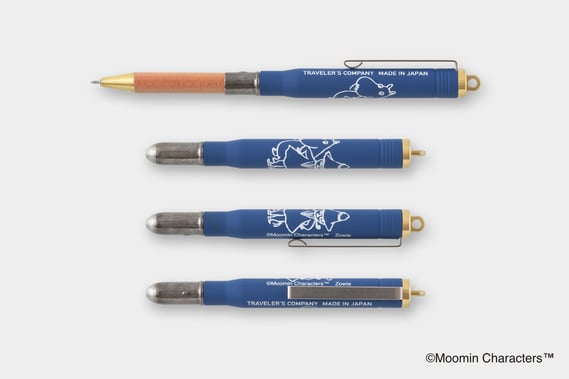 ブラスボールペンは、ブルーのボディにスナフキンの父で、根っからの自由人、ヨクサルをプリントしました。