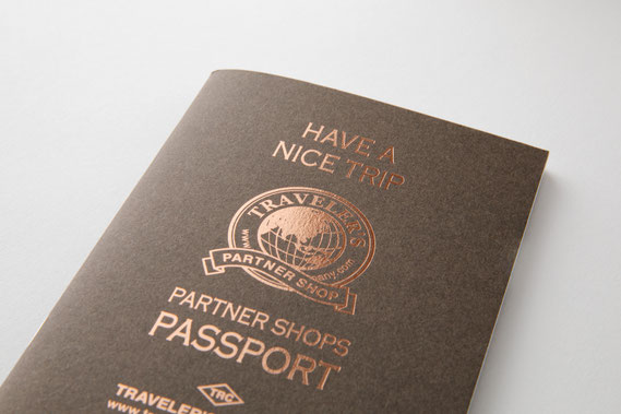 表紙には、パスポートをイメージしたデザインをカッパーの箔押しで表現しました。