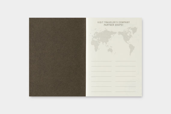 このたび、パートナーショップのスタンプを集めるのが楽しくなる、専用のノートリフィルを作りました。パスポートをイメージした表紙には、パートナーショップのロゴを箔押しで表現。中の紙は、スタンプが裏抜けしづらい厚めの紙を使用しています。スタンプを押すスペースに加え、日付、店名、場所などの記入スペースをご用意。裏面は無地のメモになっているので、ショップカードを貼ったり、その町で訪れた場所や食べたものを描いたり、自由にお使いいただけます。1冊で14店舗分のパートナーショップのスタンプを押すことができます。世界中にある14店舗を集めるには、かなり時間がかかると思いますが、ぜひチャレンジしていただけると嬉しいです。