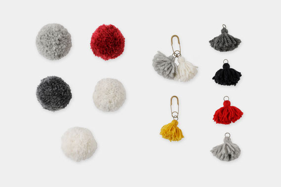 今回のイベント用にまみさんがピン付きのタッセルとポンポンのブローチを作ってくれました。short finger のニット帽をお買い上げの方には、帽子にもつけられるボンボン(写真左)、CA&Co.の商品をお買い上げの方には、シンプルなニットのセーターやマフラーのアクセントにぴったりのタッセルブローチ(写真右)をプレゼントします。