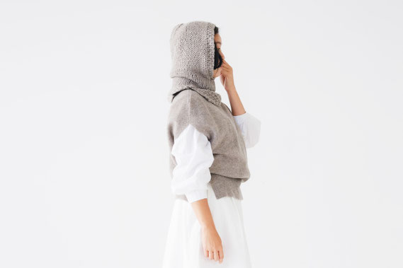 こちらは、前回の受注会で人気のあったCA&Co.フード付きネックウォーマーのカグール。寒い冬には、どうしてもむき出しの耳の寒さを実感します。子供達や若い方は耳当てや耳当て付きのニット帽で対応出来ますが、ちょっと抵抗があるという方も多いと思います。そんな時にフードだと耳当てよりは気軽に、さっとかぶれます。フードをかぶらなくても、首の後ろがとても温かく、普通のセーターがフード付きのように見えてアクセントにもなります。