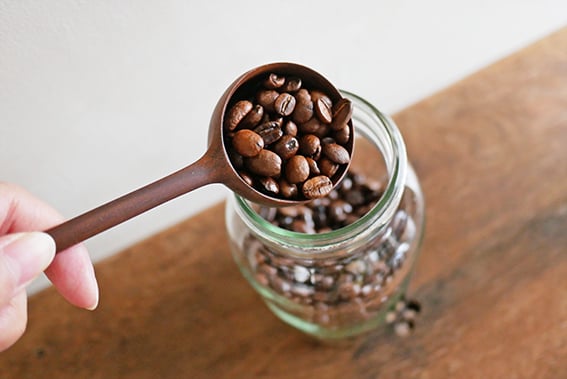木目や優しい質感に、アールで構成されたシンプルで美しい造形が魅力のコーヒー豆のメジャースプーンです。アアルトコーヒーとのコラボレーションで作られました。細めの瓶でも豆が取り出しやすかったり、スプーンが傾くことなく自立して置くことができたり、日常の道具としての使い勝手や機能性も考え抜かれて作られているのも特徴です。