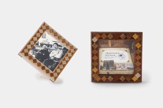 89 X 89mm の真四角の写真が飾れる寄木のフォトフレームです。幅が一般的な写真のサイズL版(89×127mm)の一辺と同じなので、長い辺をカットした写真も収納できます。寄木が写真を素敵に彩ってくれます。