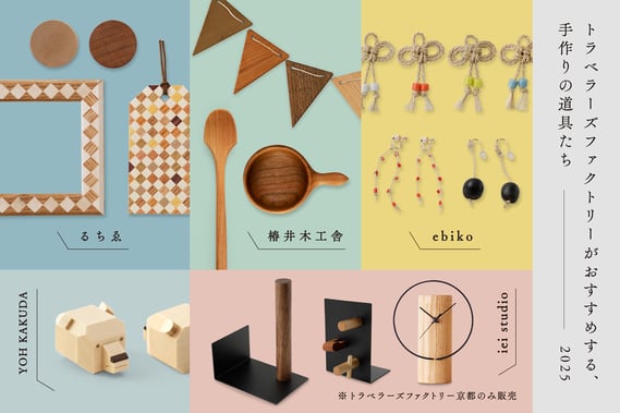 この度、トラベラーズファクトリーがおすすめする手作りの道具として、「るちゑ」、「YOH KAKUDA 」、「椿井木工舎 ZweiWoodWork」、「ebiko」をご紹介します。またさらに京都では「iei studio」も登場。どれも作り手たちが、使う人たちのことを想像しながら丁寧に時間をかけて手作業で作った道具です。大量生産の道具では感じることができない、作り手の温もりと使うほどに愛着を感じさせてくれる道具はギフトにもおすすめです。
