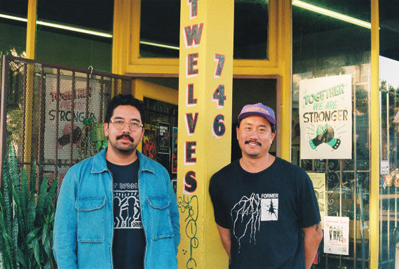 左がオーナーのヘクター・ワルヨ氏、右がデザイナーのトニー・バック氏。バック氏はTWELVES RECORDの奥にあるデザインスタジオ兼ロフトスペースで活動している。ロングビーチにおける音楽やデザイン、スケートボード・カルチャーのコミュニティーの場でもある。