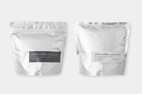 アアルトコーヒーのハウスブレンドです。「アアルトブレンド」は、一日何杯でも飲めるすっきりした味わいの浅煎り。「アルヴァーブレンド」は ビターでスイートな味わいの深煎りのコーヒーです。