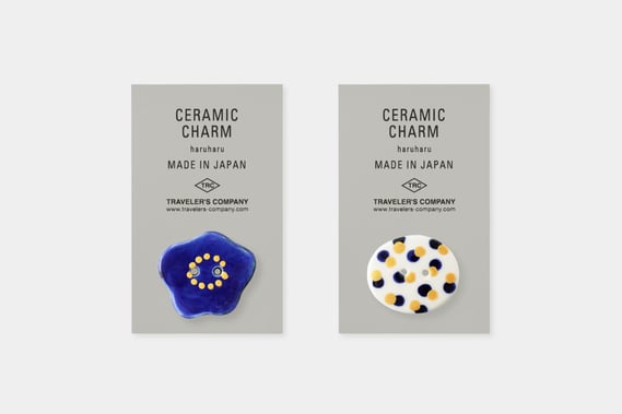 愛知県常滑の陶磁作家「haruharu」の阿部加奈さんが、一点ずつ絵付けをしたチャームです。伝統的な絵付け顔料、呉須(ごす)が焼きあがることで生まれる深みのある青は、手仕事ならではの温かさがあります。トラベラーズノートのゴムに通してお使いください。